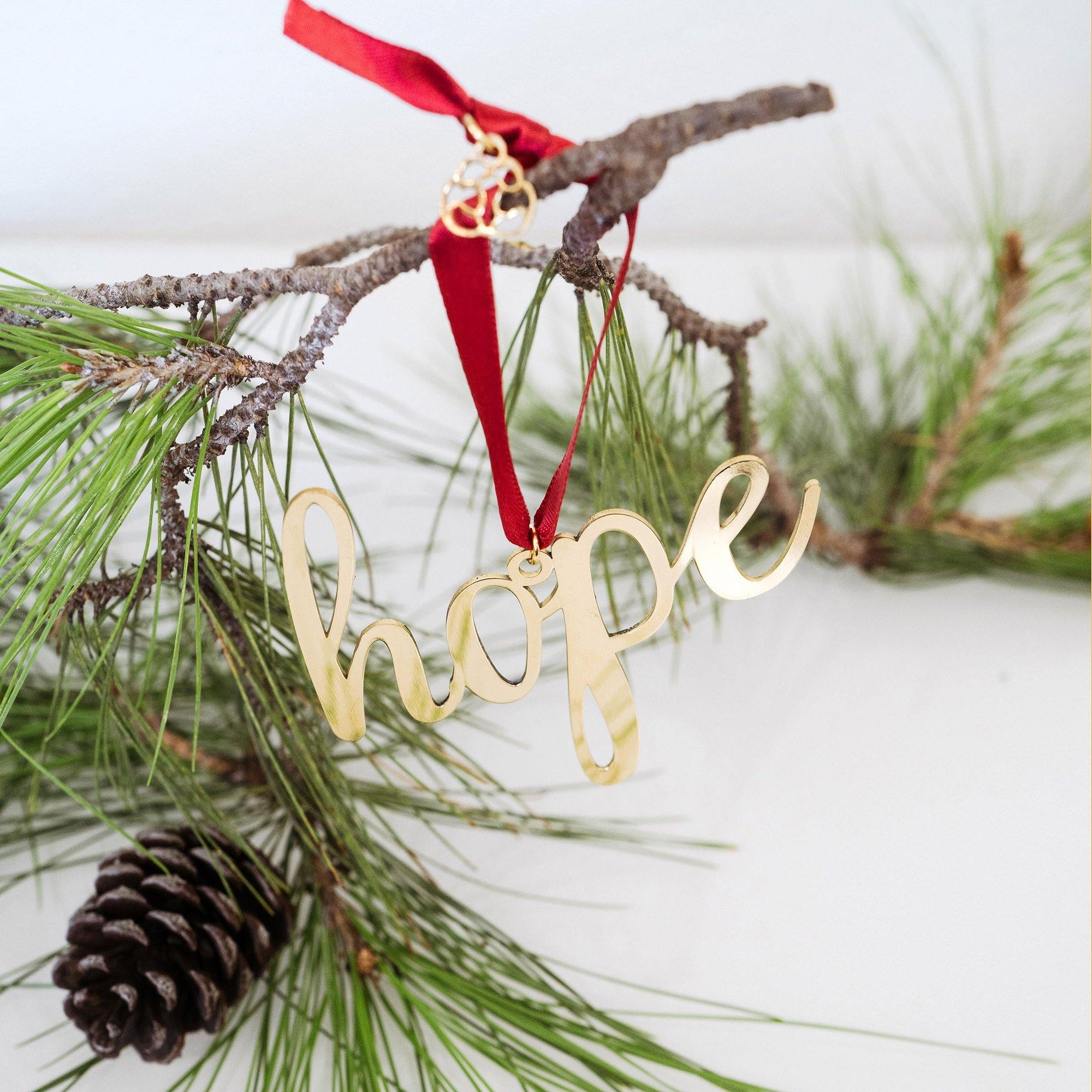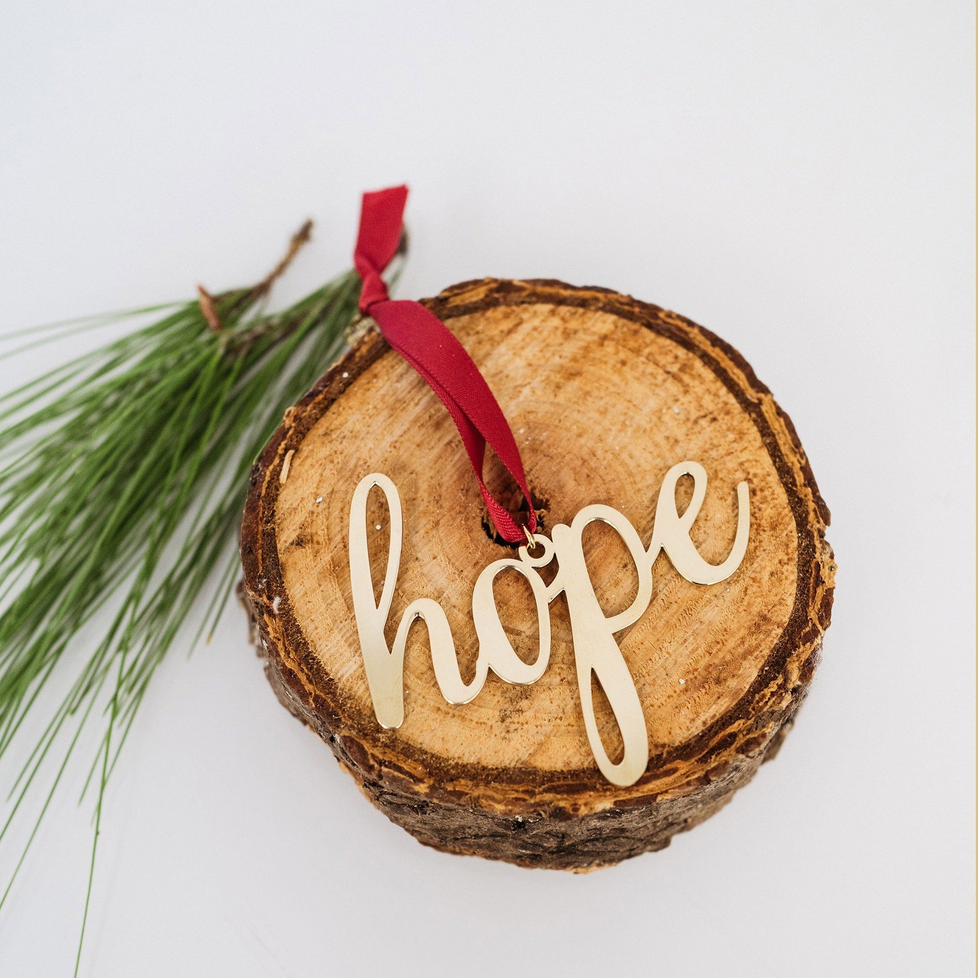 Our HOPE Ornament is high-shine polished in our Sanctuary in India. Each piece is laser cut and finished with our signature PURPOSE charm on an olive satin ribbon. In addition to being perfect for trees, they make beautiful table décor, wreath accents, and charming touches around the home.