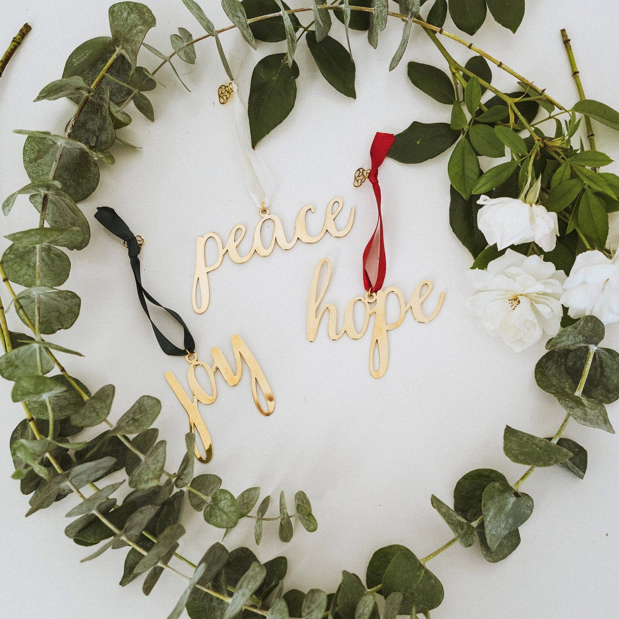 Our Joy Ornament is high-shine polished in our Sanctuary in India. Each piece is laser cut and finished with our signature PURPOSE charm on an olive satin ribbon. In addition to being perfect for trees, they make beautiful table décor, wreath accents, and charming touches around the home.